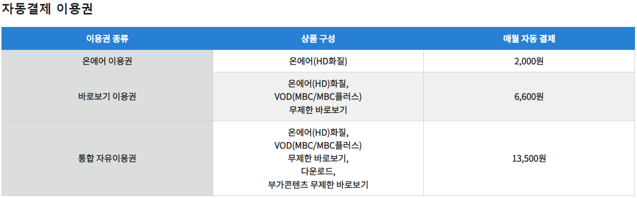 별도의 이용권을 구매하셔야 하는데요. MBC에서는 자동결제를 이용하시는 분들을 위해 이용권 최초