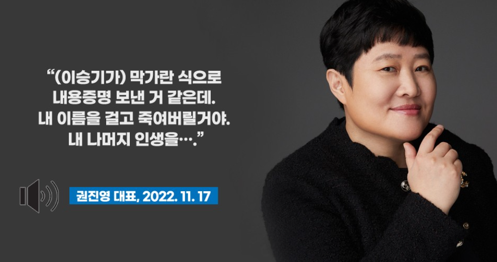 이를 받은 후크 엔터테이먼트 대표 권진영은 분노해 죽여버린다는 협박을 했습니다.