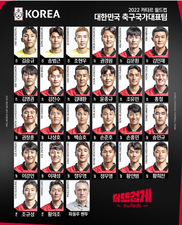 카타르 월드컵 대한민국 출전 선수 명단