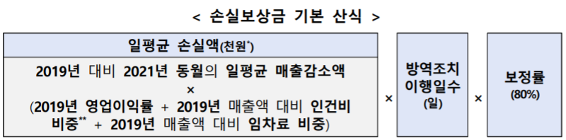 손실보상금은 코로나가 없었던 2019년을 기준으로 같은 기간 대비 매출액 감소 부분에