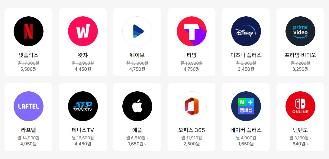 음악, 도서 등 다양한 구독 계정을 공유하려는 사람들이 모여있습니다.